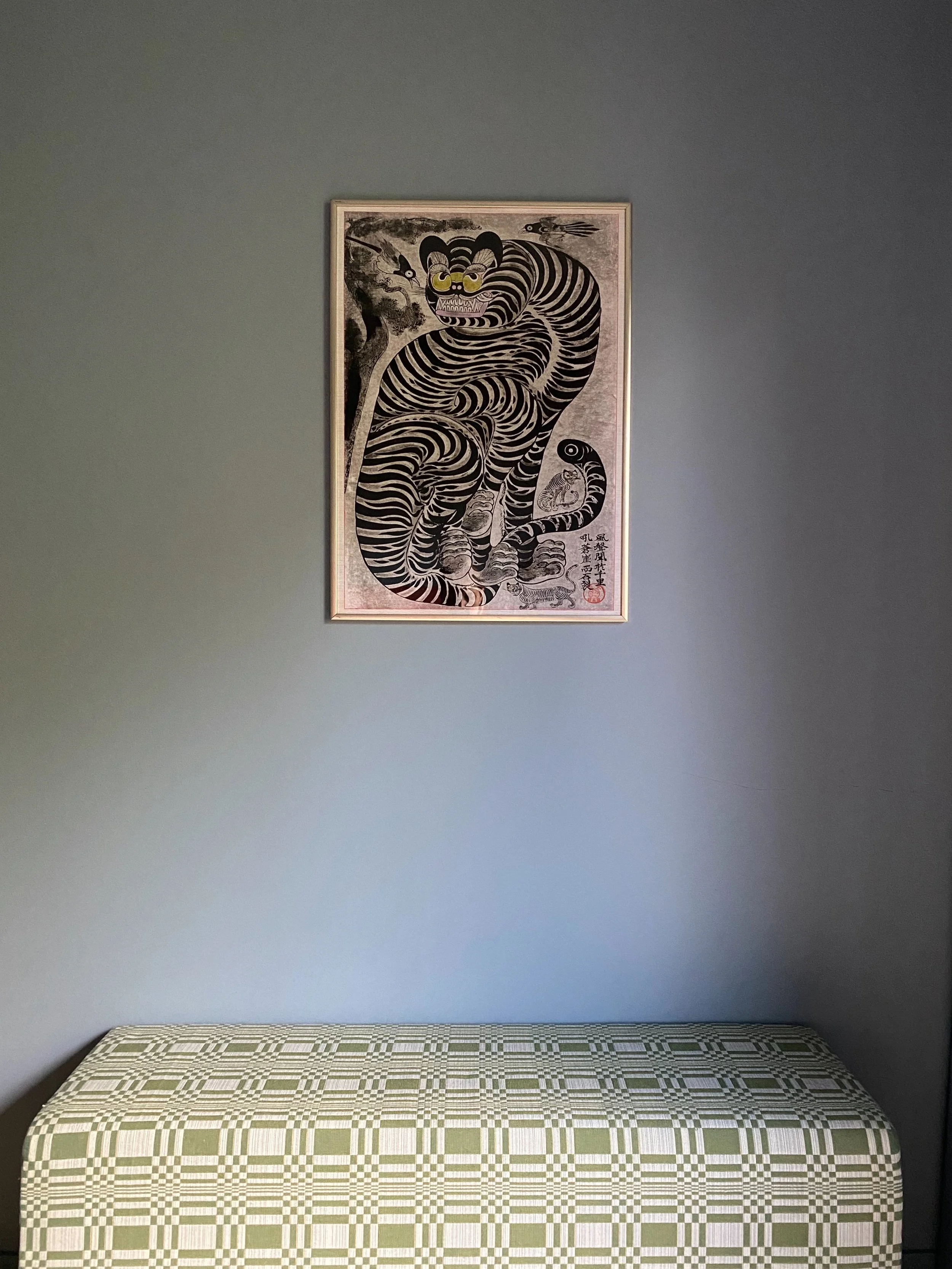 Tähän asuntoon tehtiin täysimittainen remontti, jossa kaikki uusittiin. Myös seiniä purettiin ja uusia rakennettiin, jotta pohjasta saisi mahdollisimman toimivan. Vanha mosaiikkiparketti sekä tammiovet kunnostettiin. Suunnittelun lähtökohta oli kunnioittaa 70-luvun tunnelmaa raikkaalla otteella. Suurin osa kalusteista ja valaisimista on kierrätyslöytöjä Torista, kirpputoreilta tai huutokaupoista.