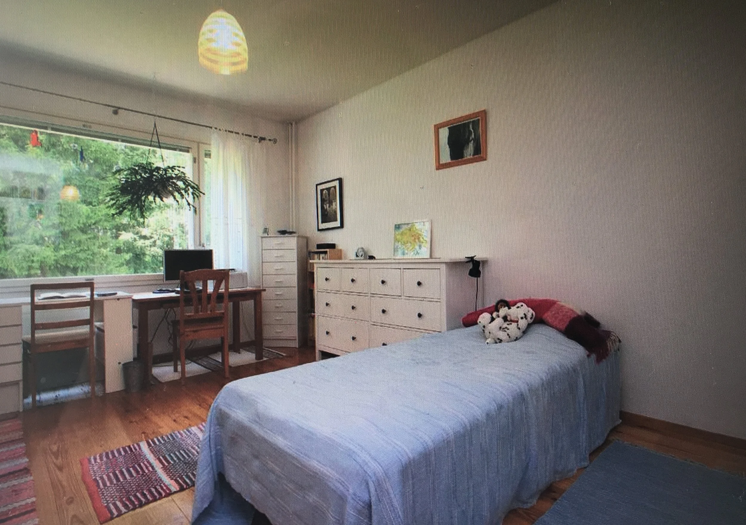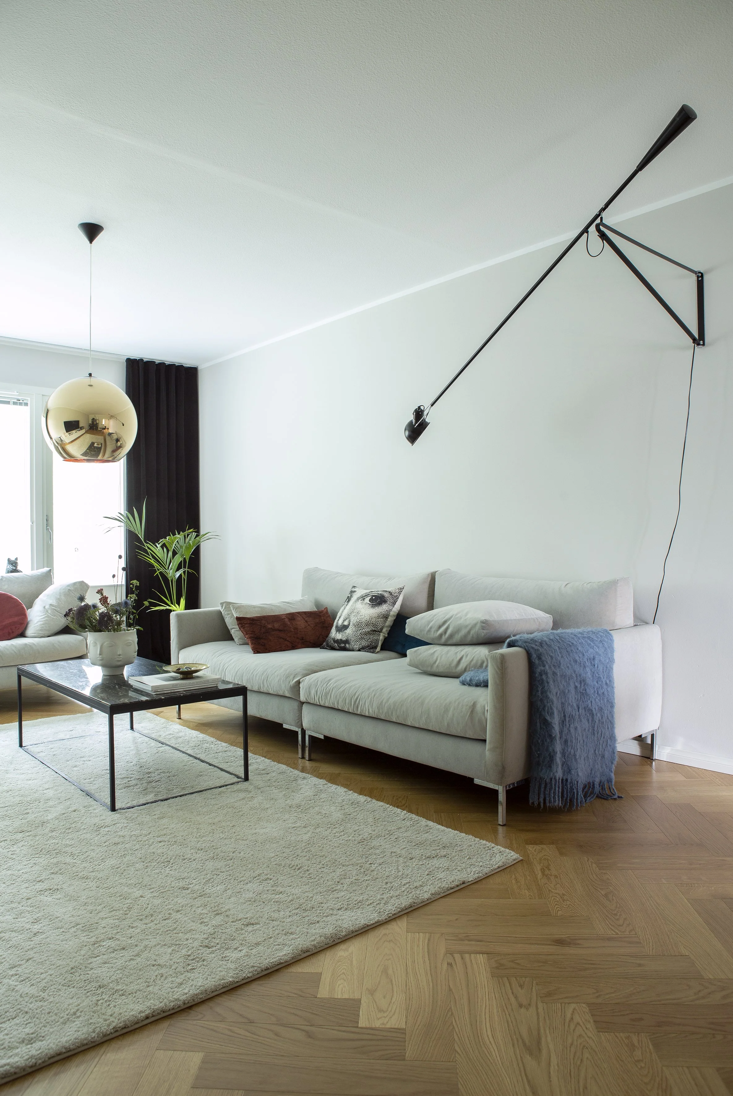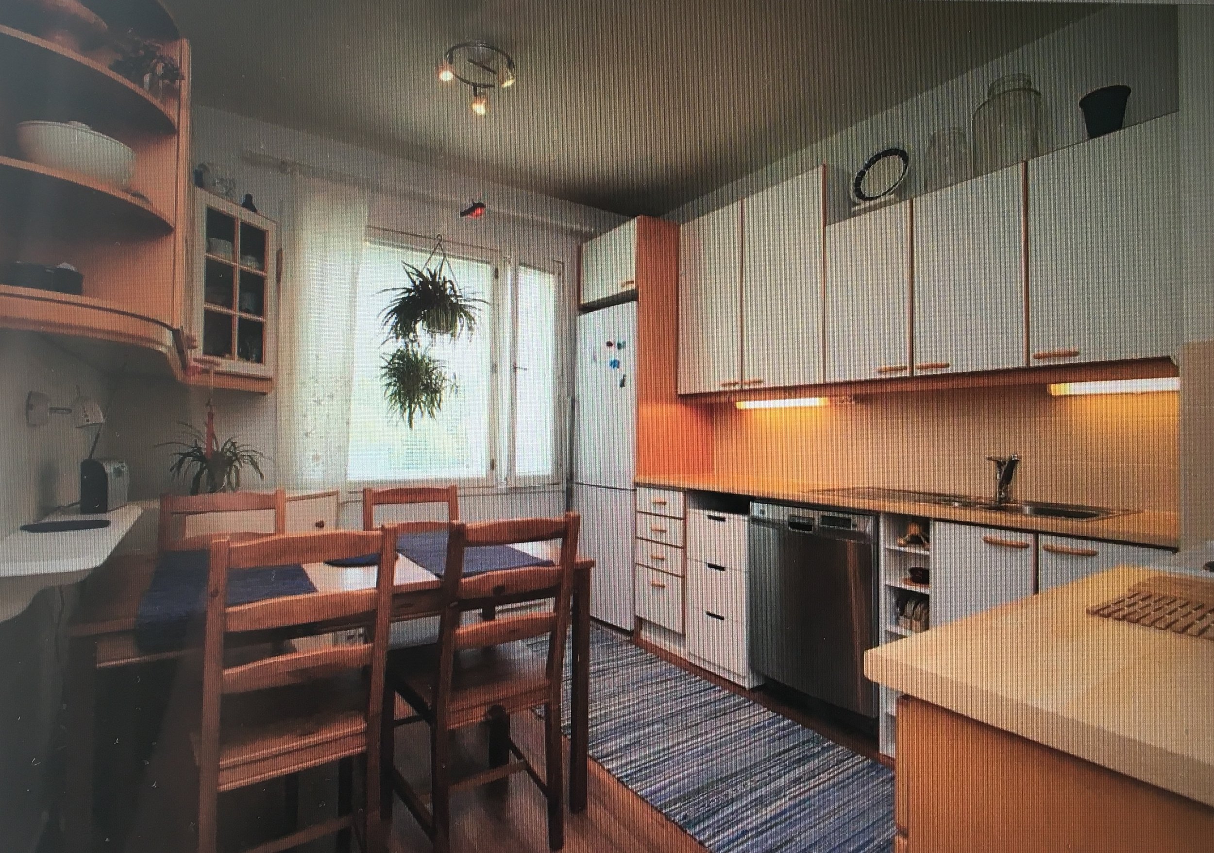Projekti Haltiantie, 60-luvun kerrostalokolmioAsuntoon tehtiin täysimittainen remontti, sekä kalusteet, valaisimet ja tekstiilit uusittiin suurelta osin. Useat hankinnat ovat kierrätyslöytöjä kirpputoreilta, Torista tai huutokaupoista. Ennen