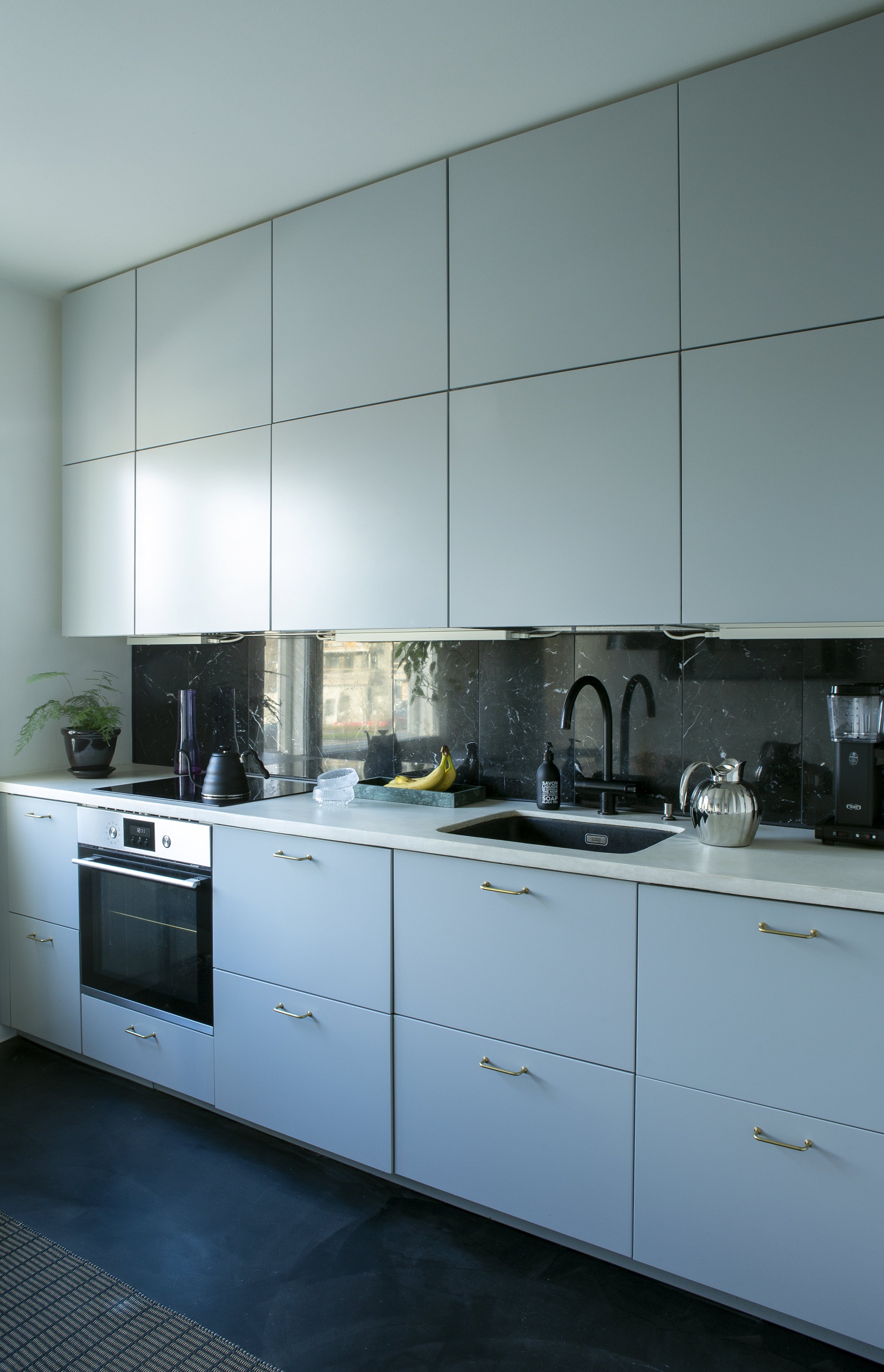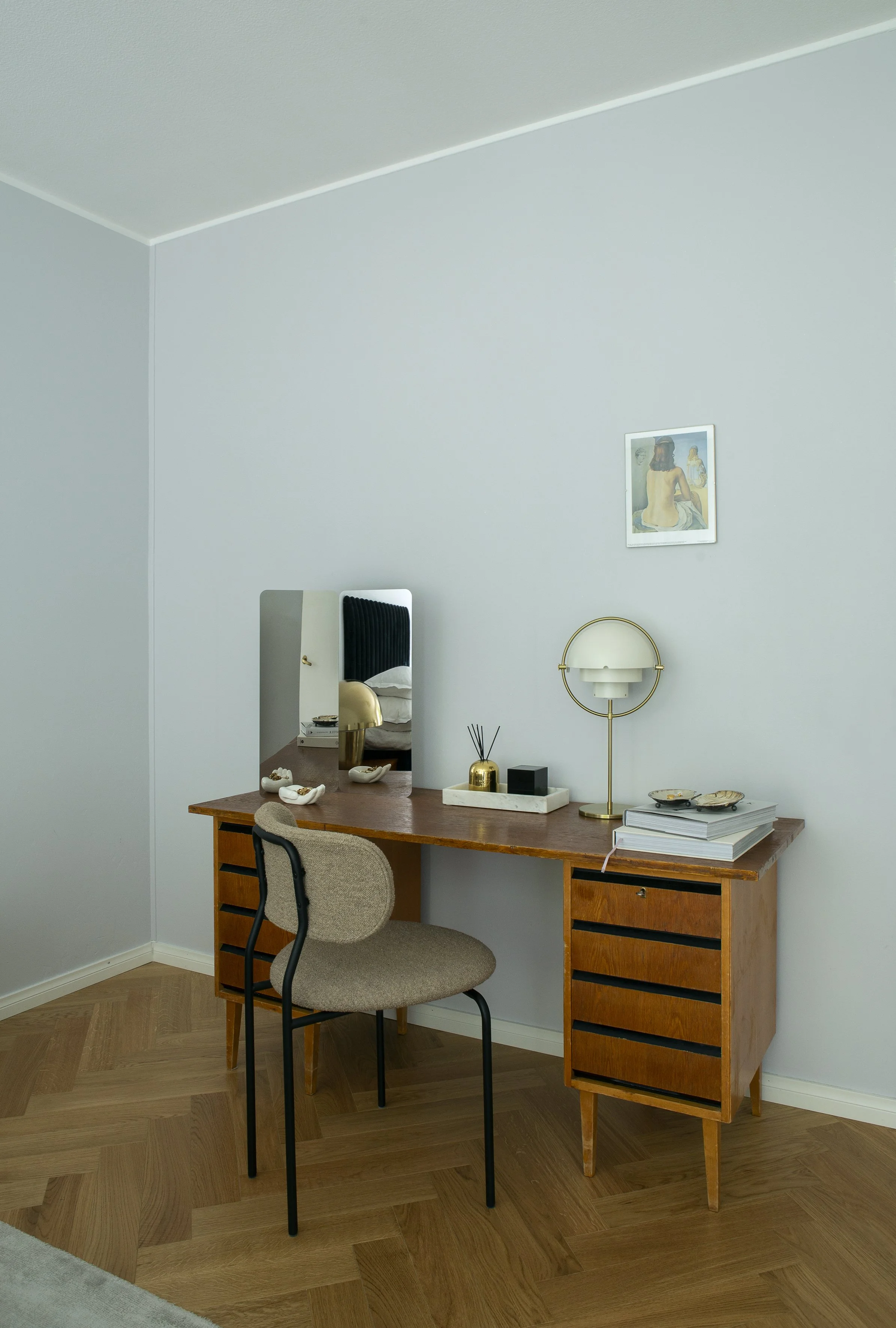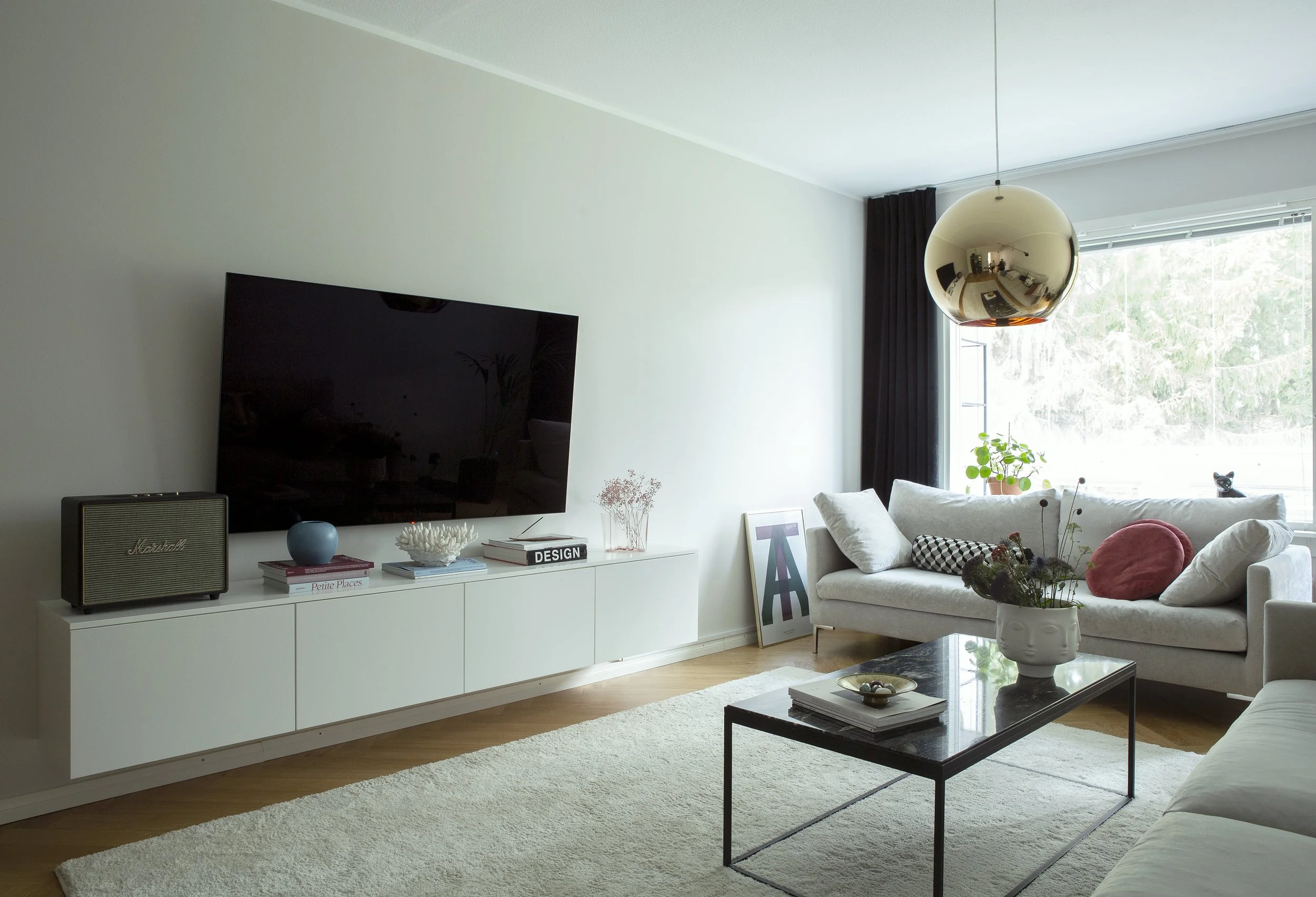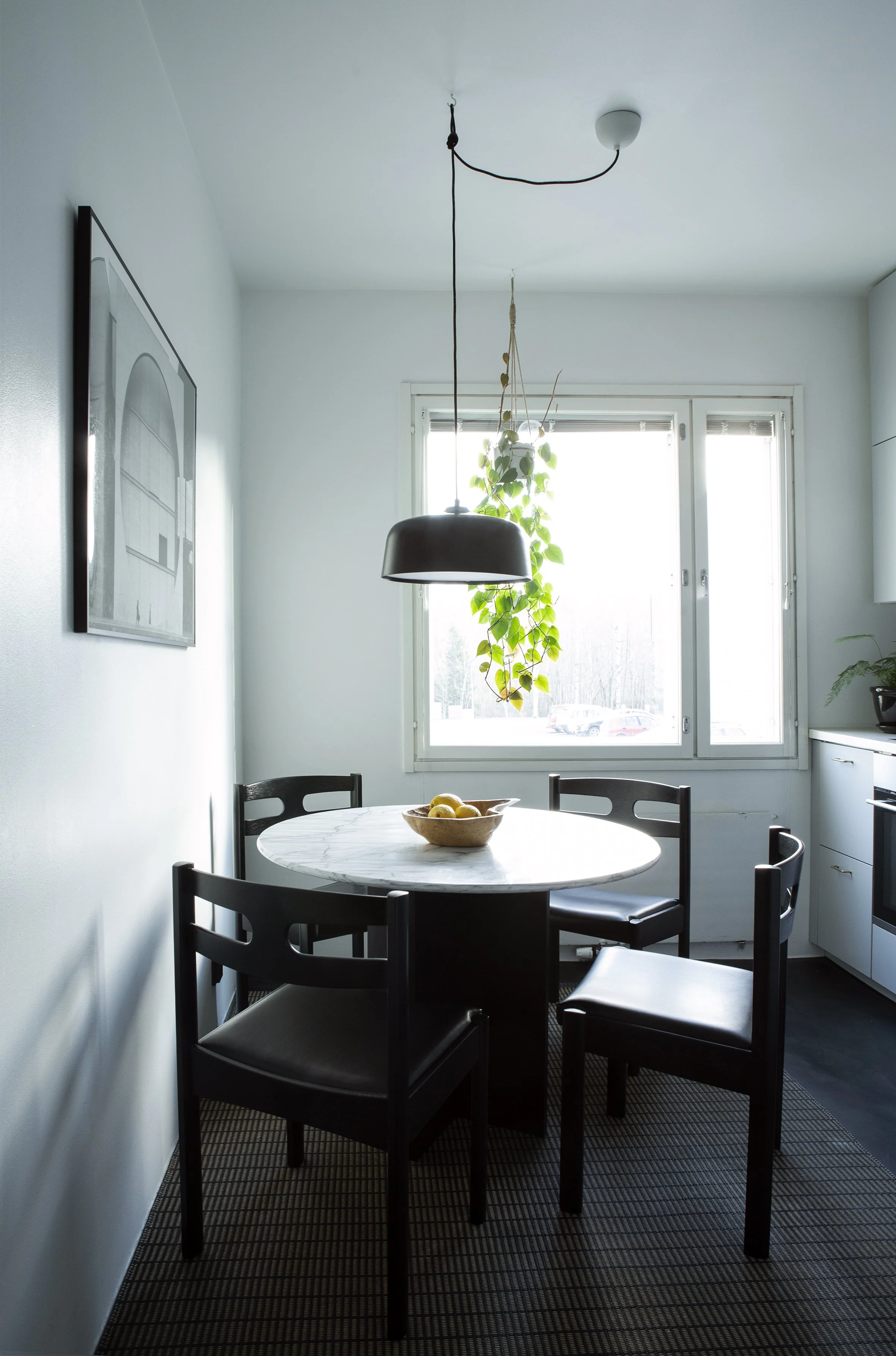 Projekti Haltiantie, 60-luvun kerrostalokolmioAsuntoon tehtiin täysimittainen remontti, sekä kalusteet, valaisimet ja tekstiilit uusittiin suurelta osin. Useat hankinnat ovat kierrätyslöytöjä kirpputoreilta, Torista tai huutokaupoista. Ennen