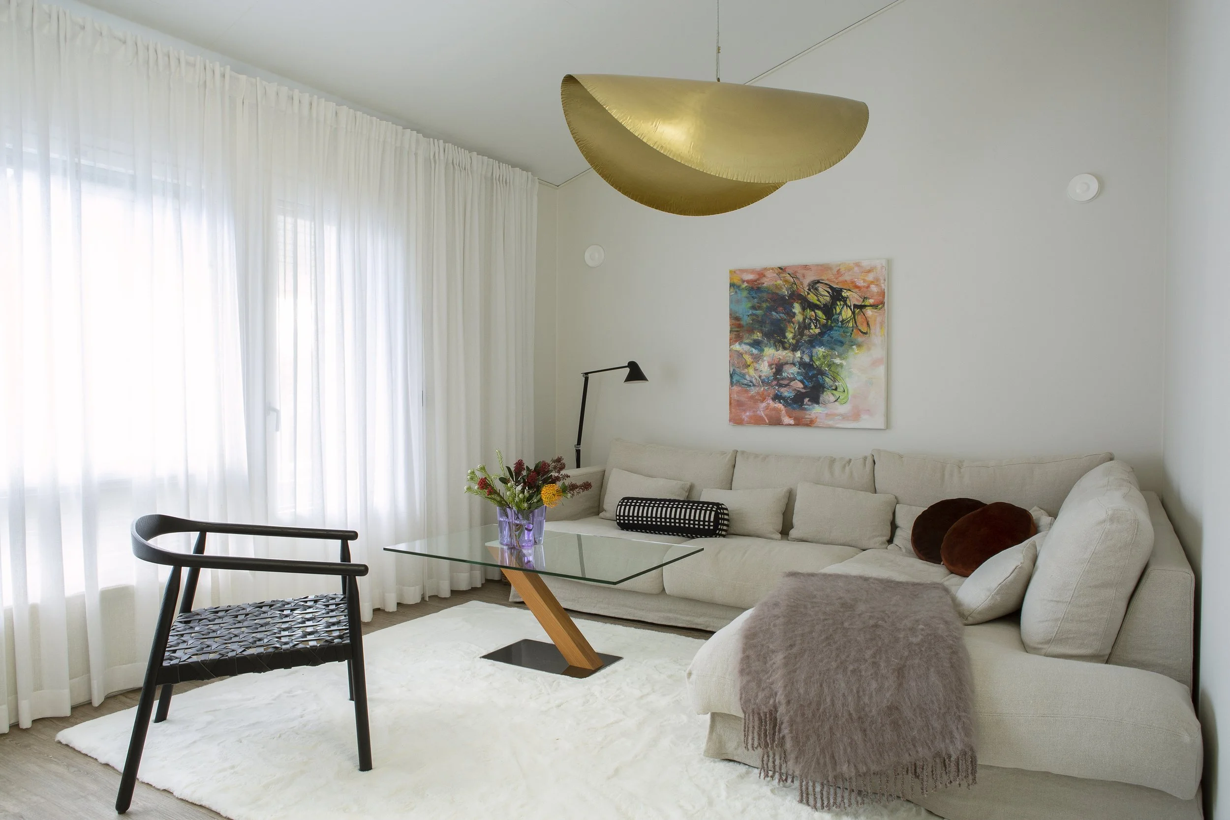 Asunnossa tehtiin laaja remontti, jossa uusittiin kaikki pinnat. Myös lähes kaikki kalusteen, valaisimet ja tekstiilit vaihdettiin.